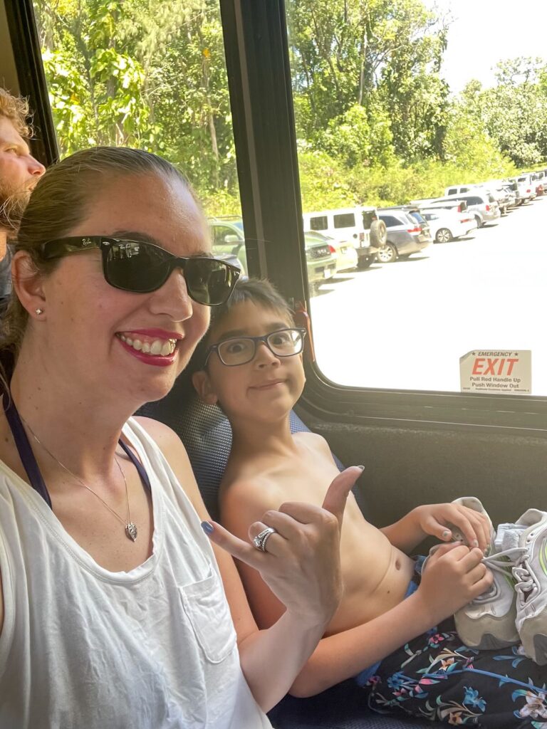 My son usually gets carsick on winding roads (and the road to Haena has some curves), but he was totally fine on the shuttle. I think it helped that he could look out the windows and wasn’t focused on a screen.