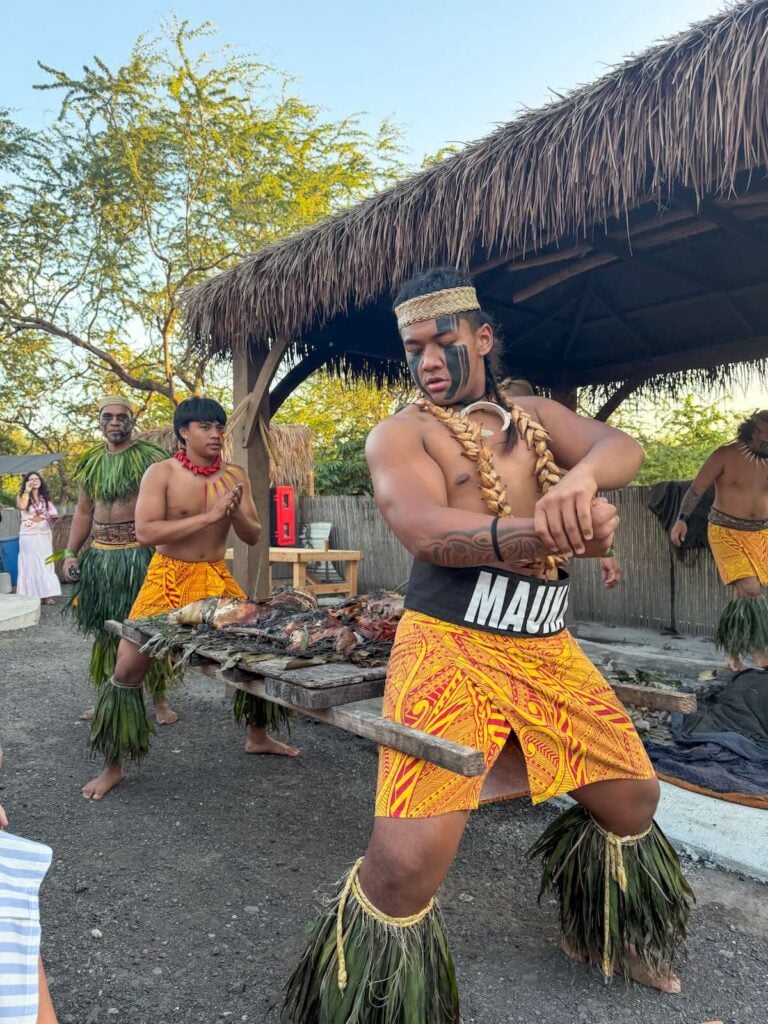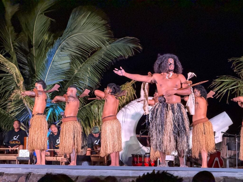 Seven Polynesian cultures are represented: Cook Islands, Samoa, Tonga, Fiji, Hawaii, Tahiti, and New Zealand. Every single one is filtered through the warrior theme that gives this luau its name.