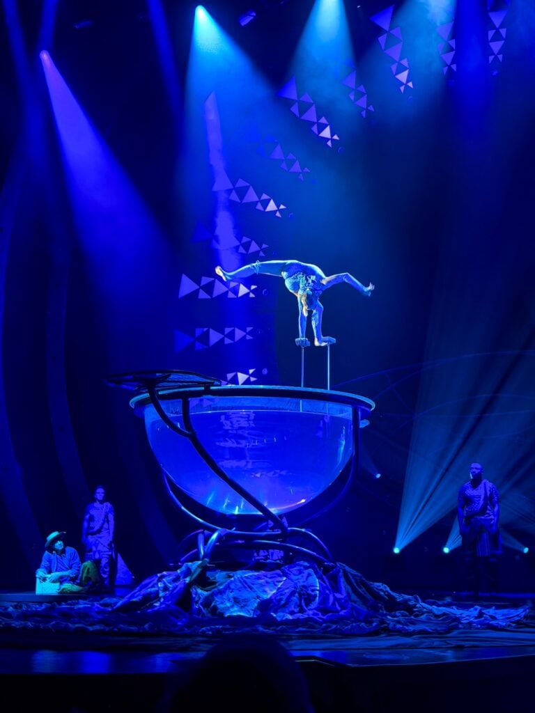 My standout moments: a woman doing contortions inside and outside a fishbowl full of water, two men where one laid on a beach chair while the other did acrobatics on top of him, and the finale with performers running through moving circles.