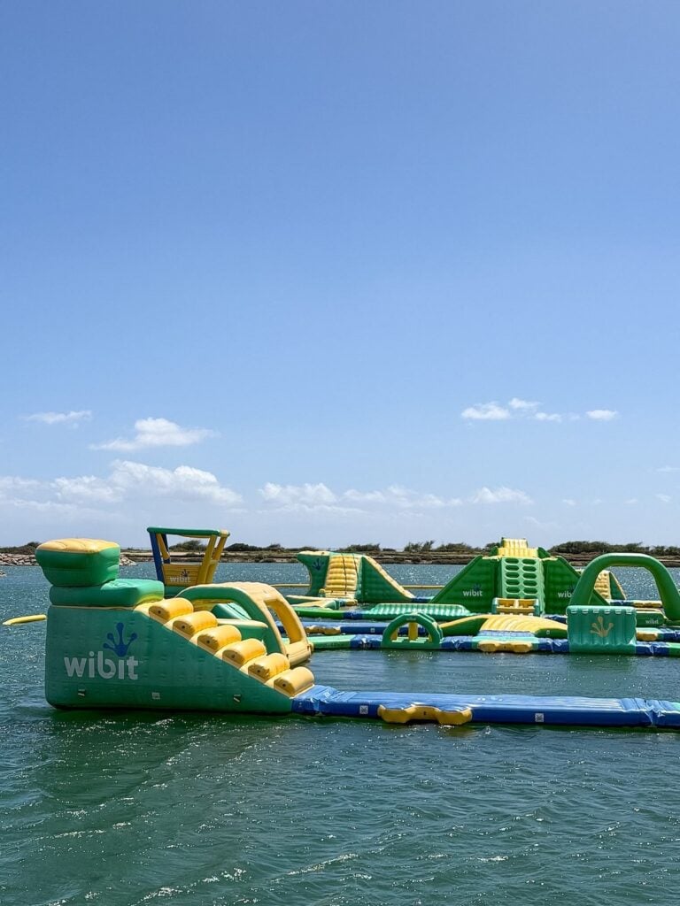 If you’ve ever been on a cruise and they stop at their private island with the inflatable water course? That’s basically what this is. Same vibe, similar setup, just in a lagoon instead of the ocean.
