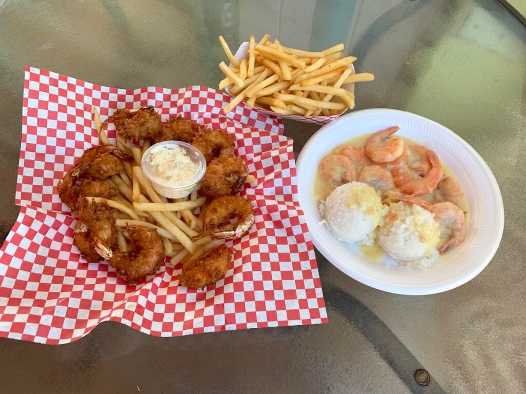 After you come down from the canyon and work your way back toward town, stop in Waimea for my absolute favorite coconut shrimp in Hawaii at Shrimp Station.