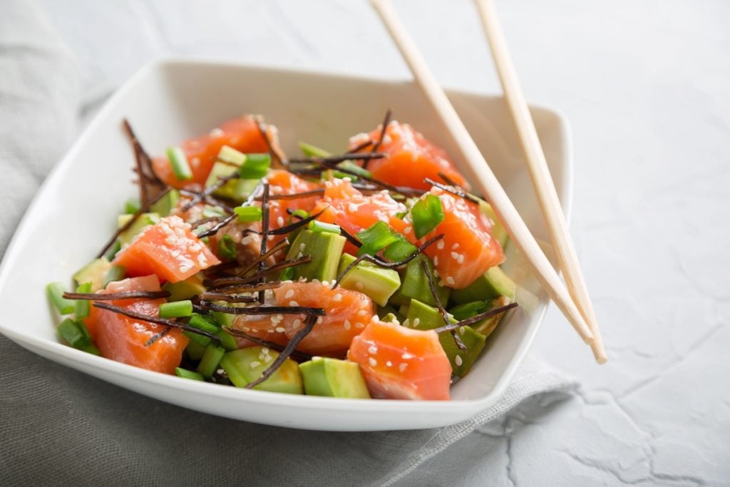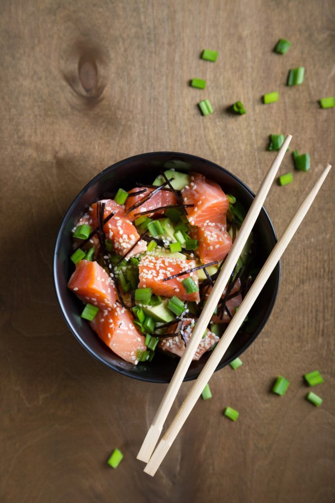 Good poke starts with fresh fish cut into generous cubes. You want chunks that are big enough to taste the fish itself, not just the marinade. The fish should smell like the ocean (in a good way), never fishy.